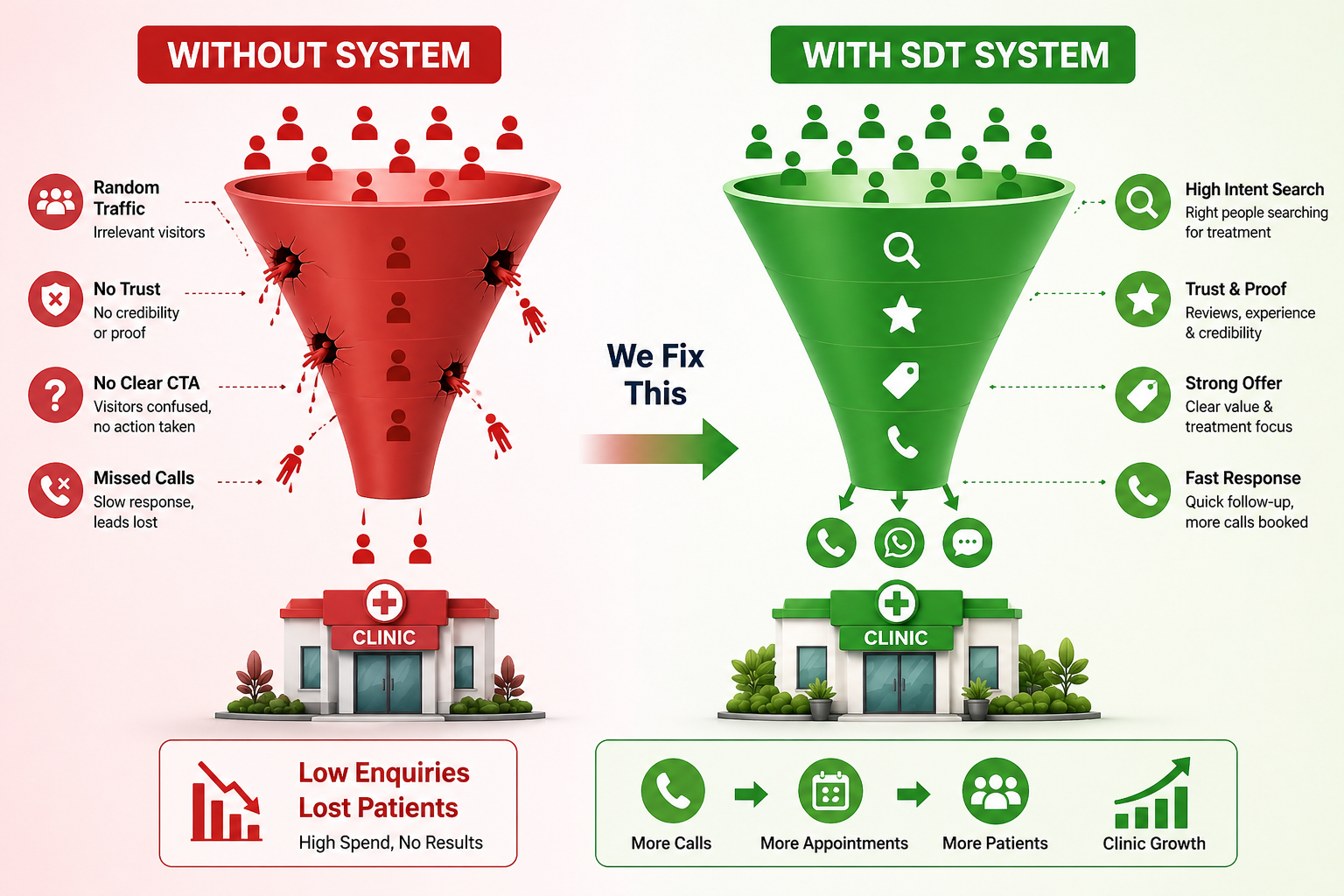 We help your clinic attract nearby patients who are actively searching for treatment on Google turning searches into real calls and WhatsApp enquiries.