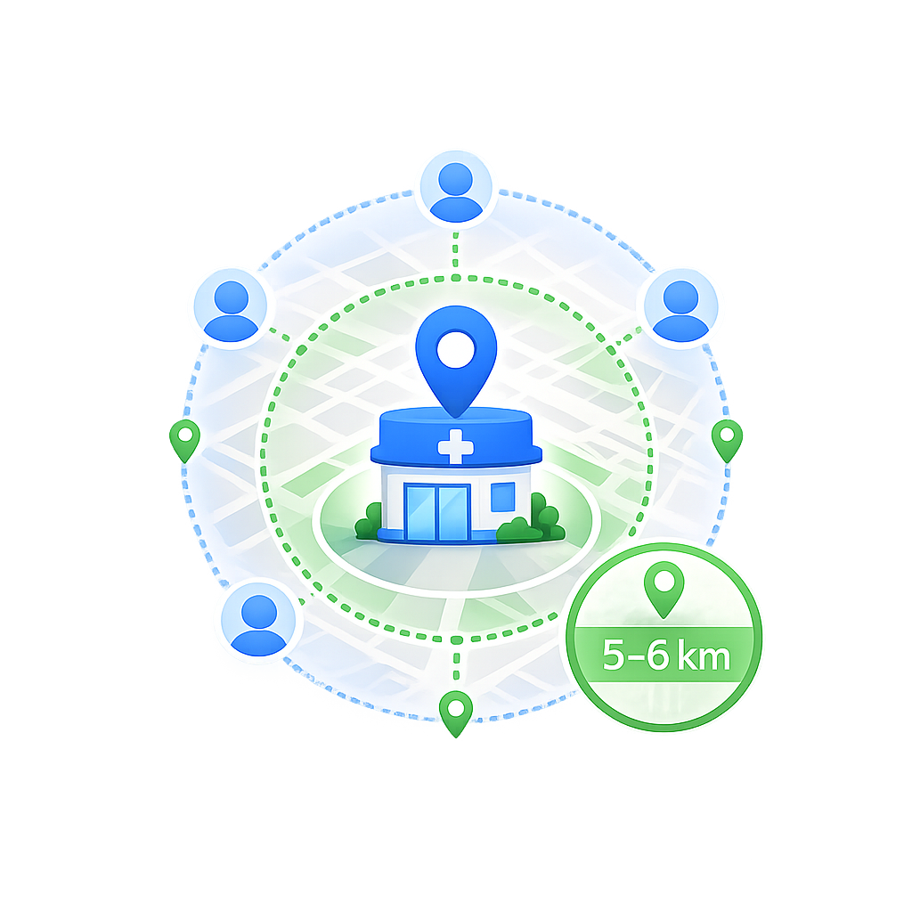 Reach patients within a 5–6 km radius of your clinic